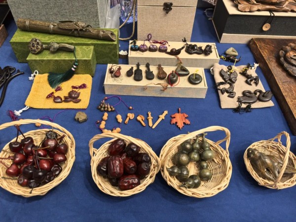 在木雕展台上,一筐筐圆润饱满的樱桃、晶莹剔透的荔枝、干巴巴的红枣摆放整齐,刚想拿到嘴边咬一口,却闻到了檀木香。原来,这些“水果”都是由辽南手工木雕第七代非遗传承人孙景年雕刻而成。