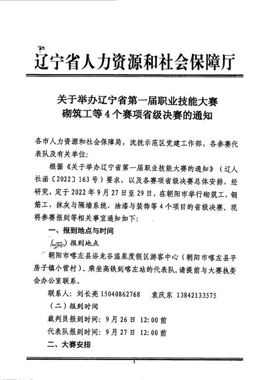 关于举办辽宁省第一届职业技能大赛砌筑工等4个赛项省级决赛的通知