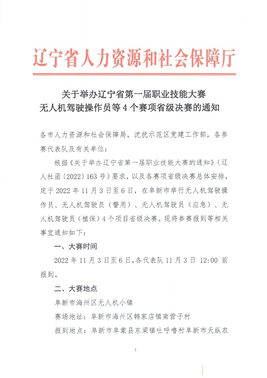 关于举办辽宁省第一届职业技能大赛无人机驾驶操作员等4个赛项省级决赛的通知