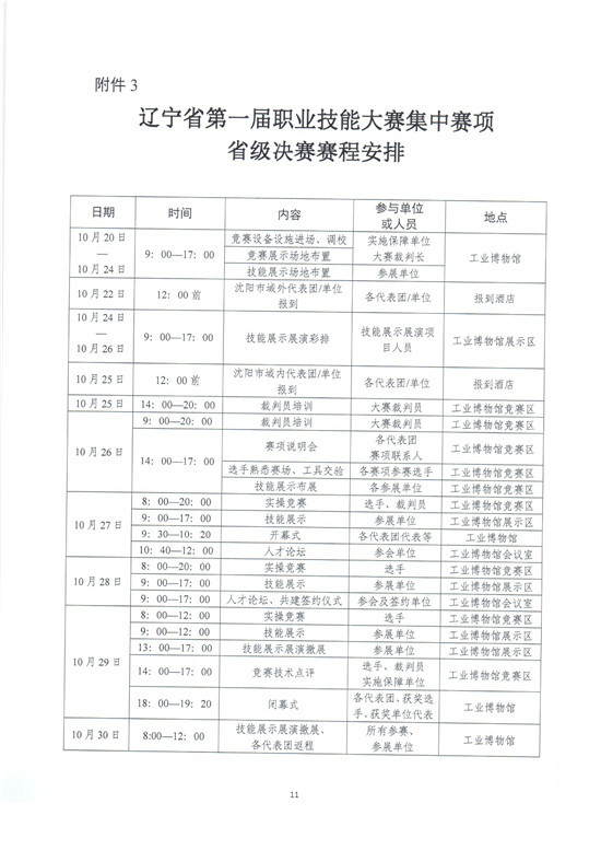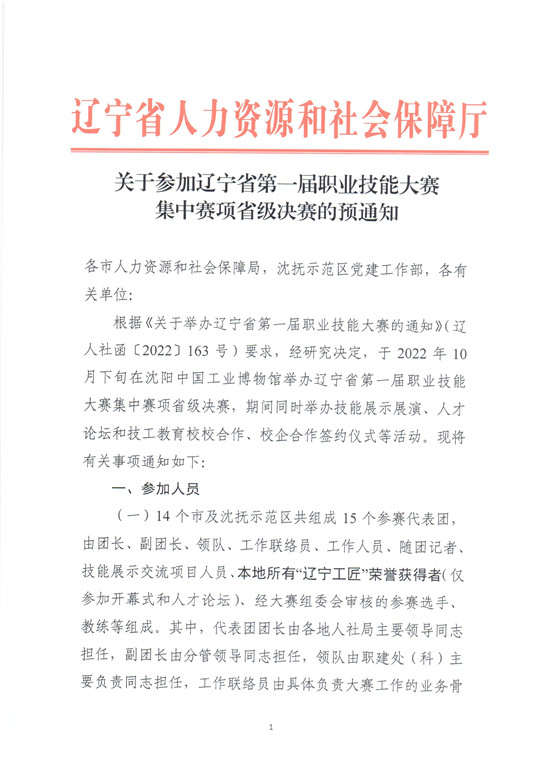 关于参加辽宁省第一届职业技能大赛集中赛项省级决赛的预通知