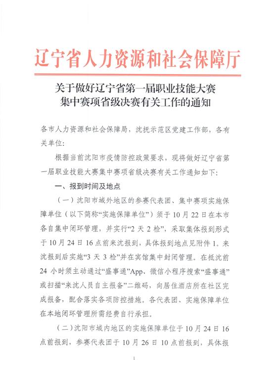 关于做好辽宁省第一届职业技能大赛集中赛项省级决赛有关工作的通知