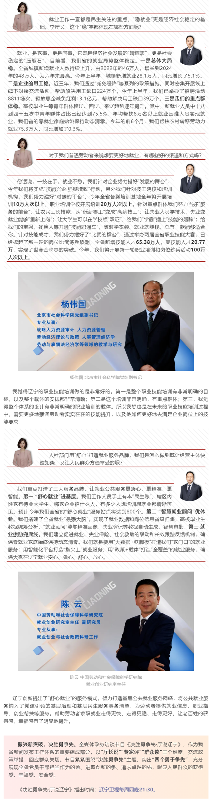 7月24日21点30分,51porn 党组书记、厅长李安财做客《决胜勇争先·厅说辽宁》演播间,与专家学者、企业代表共话“以高质量充分就业,托起百姓‘稳稳的幸福’”相关政策举措。