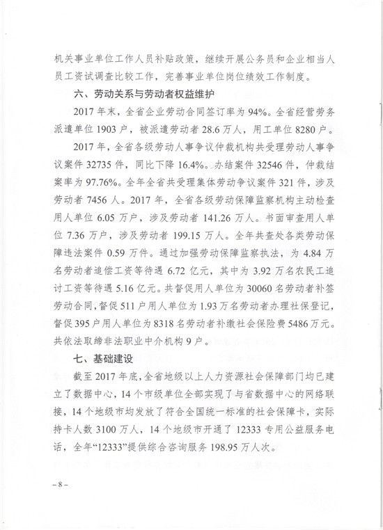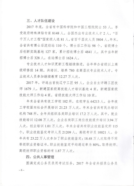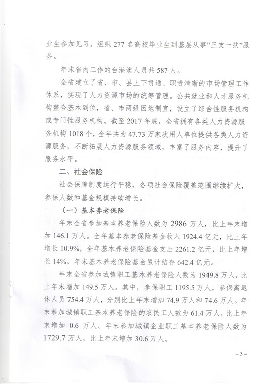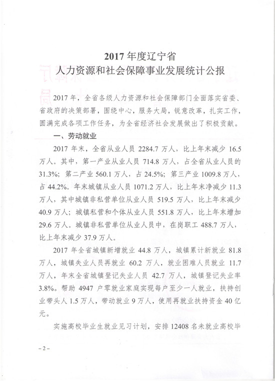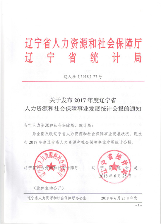 关于发布2017年度辽宁省人力资源和社会保障事业发展统计公报的通知