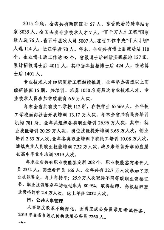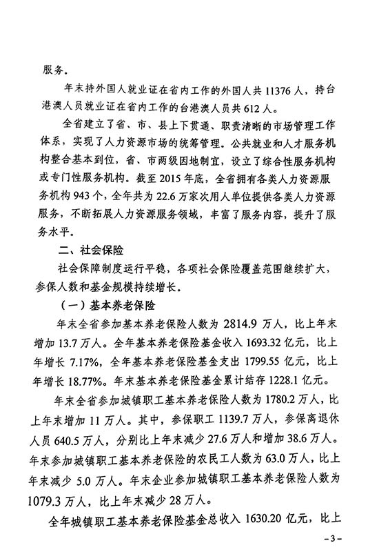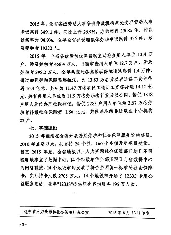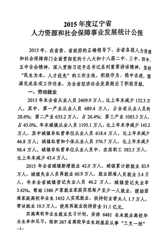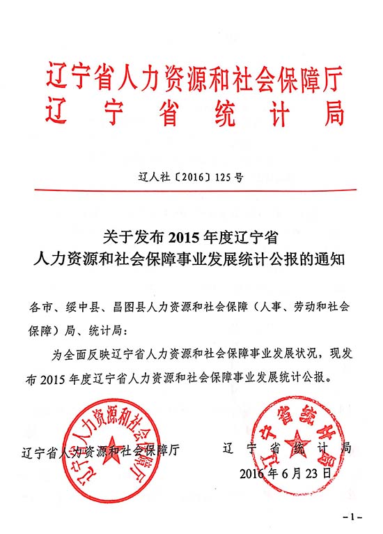 关于发布2015年度辽宁省人力资源和社会保障事业发展统计公报的通知