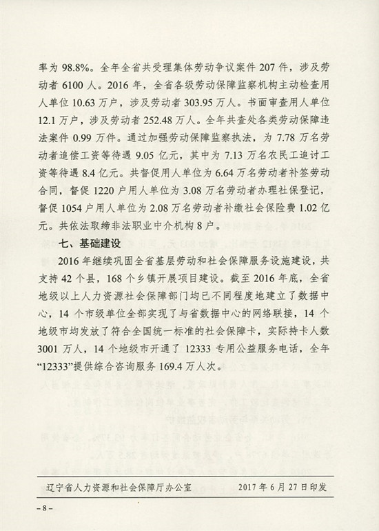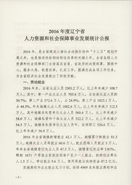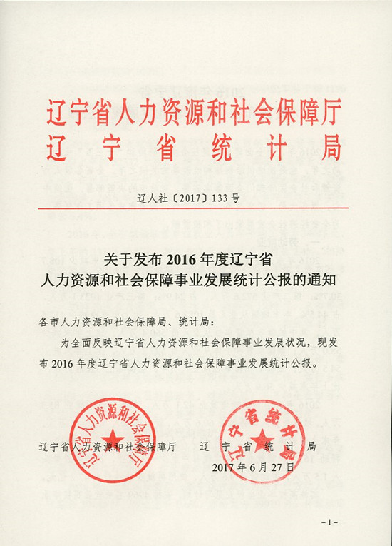 关于发布2016年度辽宁省人力资源和社会保障事业发展统计公报的通知