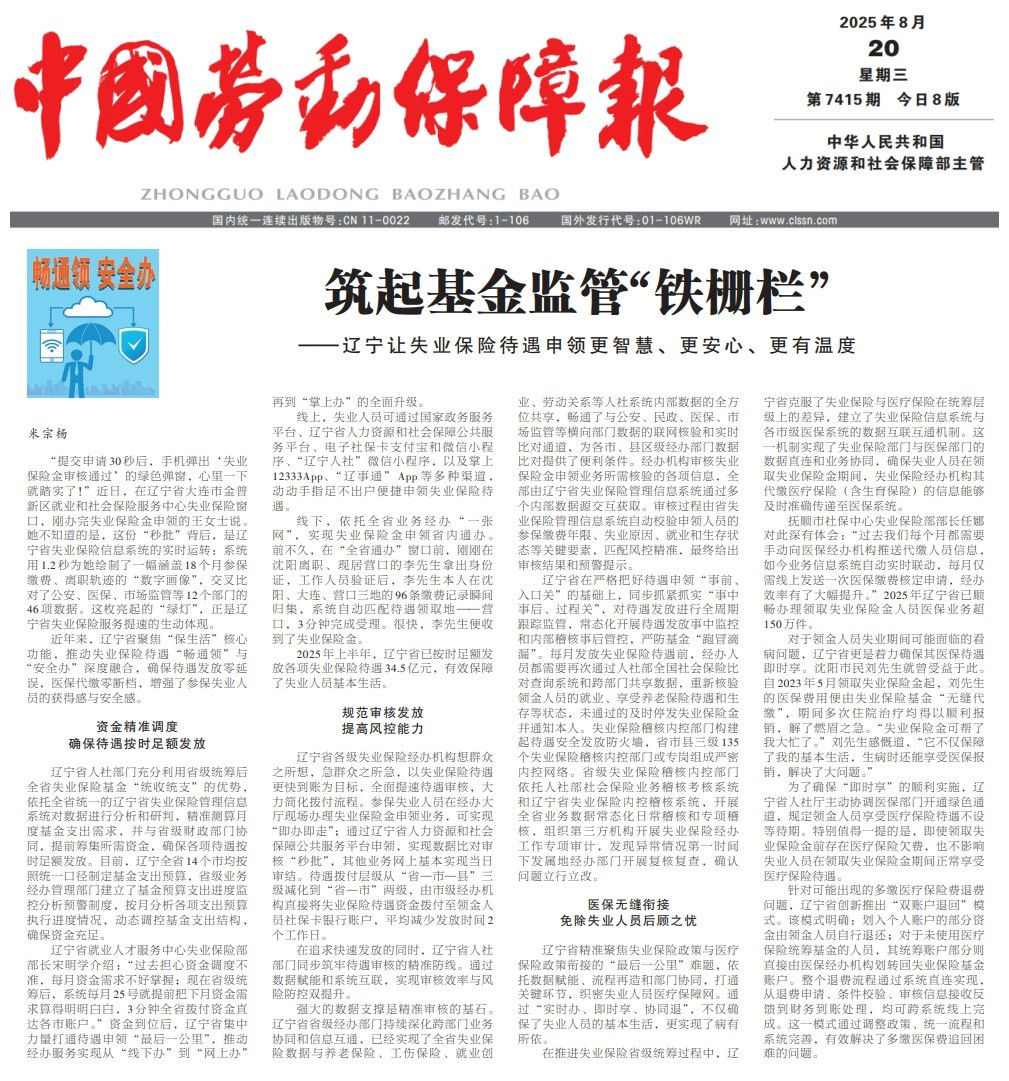 近年来,辽宁省聚焦“保生活”核心功能,推动失业保险待遇“畅通领”与“安全办”深度融合,确保待遇发放零延误,医保代缴零断档,增强了参保失业人员的获得感与安全感。