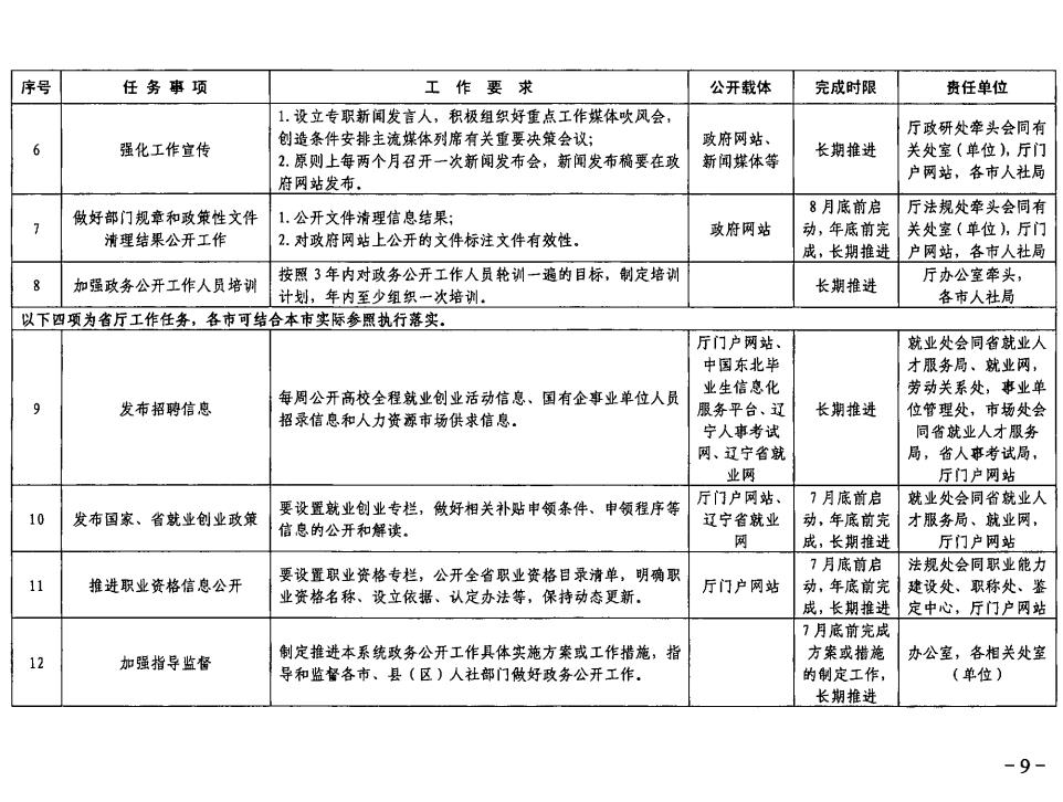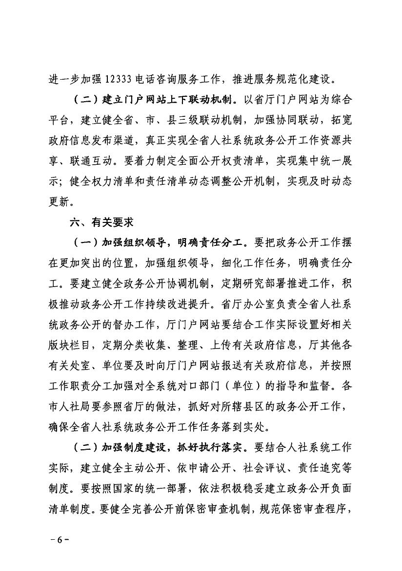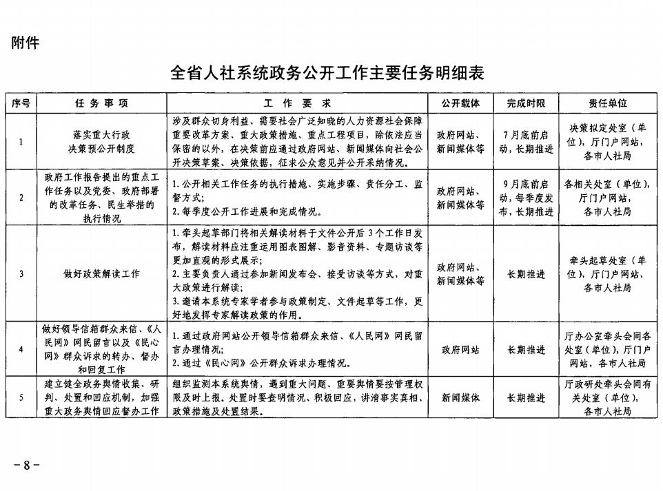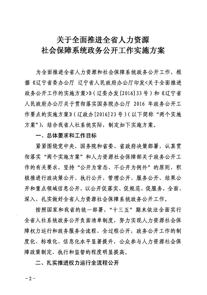 关于全面推进全省人力资源社会保障系统政务公开工作实施方案