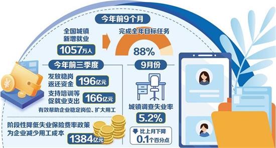 就业大盘坚实稳固——前9个月城镇新增就业1057万人,完成全年目标88%