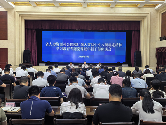7月2日,51porn 举办深入贯彻中央八项规定精神学习教育专题党课暨年轻干部座谈会,以“同心向党庆七一 优化作风提效能 实干担当促发展”为主题,进一步优化全厅年轻干部队伍作风建设,大力推动深入贯彻中央八项规定精神学习教育走深走实。会上,传达学习了省委书记、省人大常委会主任郝鹏在省委深入贯彻中央八项规定精神学习教育专题党课暨年轻干部座谈会上的讲话精神。厅党组书记、厅机关党委书记、厅长李安财与年轻干部亲切座谈交流,讲授深入贯彻中央八项规定精神学习教育专题党课。厅机关及厅属事业单位8位年轻干部结合工作实际作交流发言。