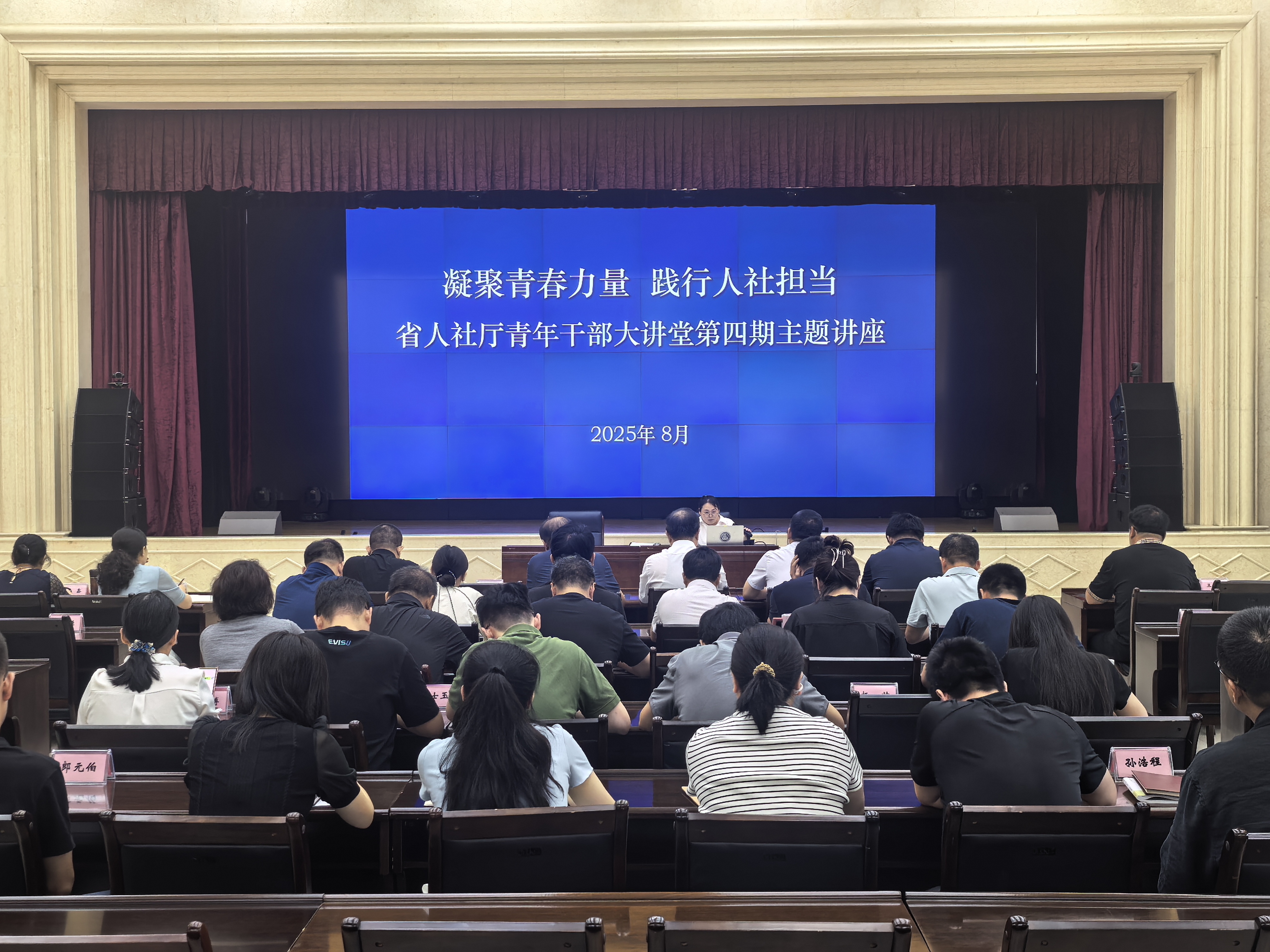 厅机关全体公务员,省劳动监察执法服务中心青年干部在主会场参加。省就业和人才服务中心、省社会保险事业服务中心青年干部在分会场参加。